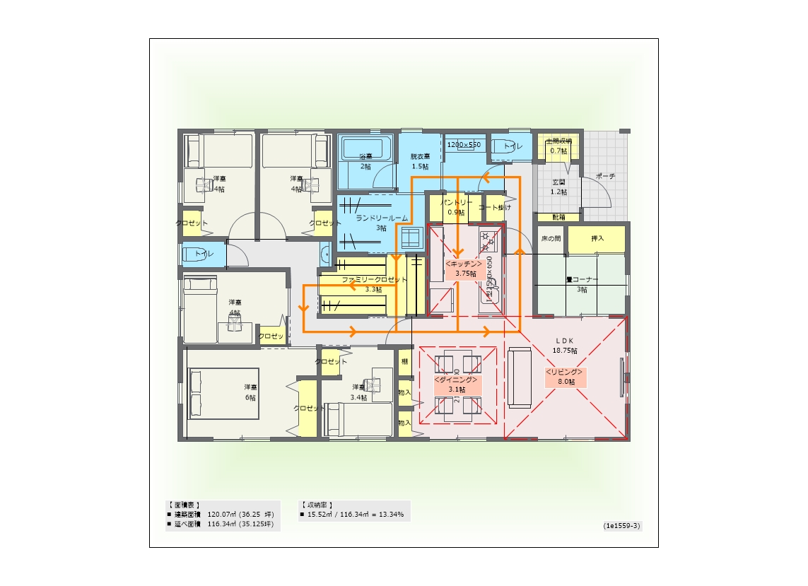 ■ 収納率 15.52㎡ / 116.34㎡ = 13.34%