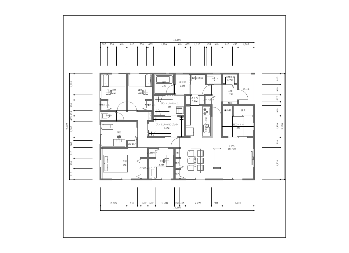 ▶四角い間取りの平屋