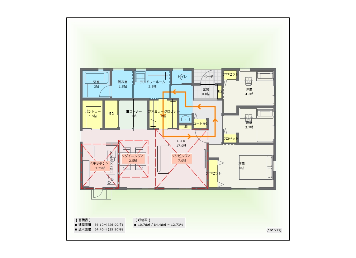 ■ 収納率 10.76㎡ / 84.46㎡ = 12.73%