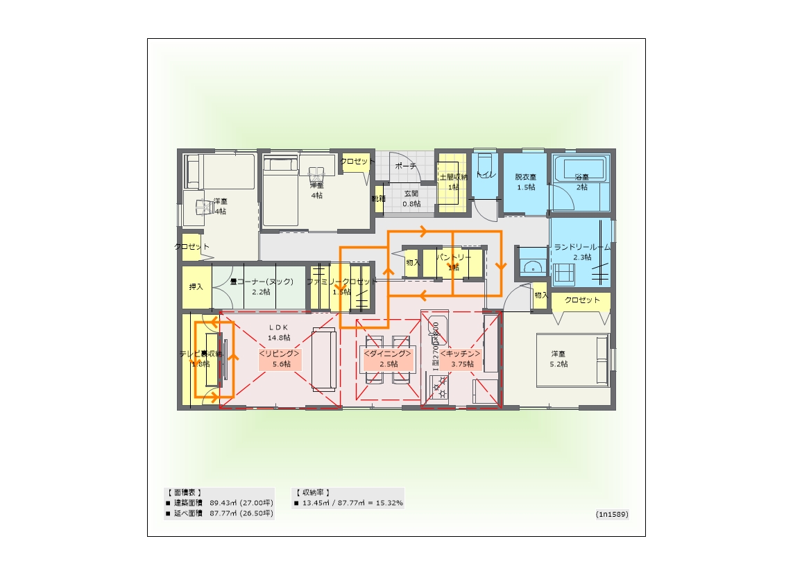 ■ 収納率 13.45㎡ / 87.77㎡ = 15.32%