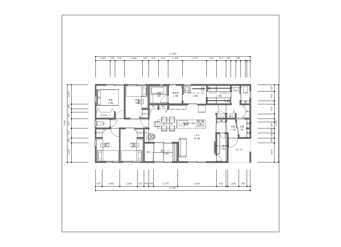 【間取り例】平屋建て 4LDK 30.54坪 (1s1563-2)