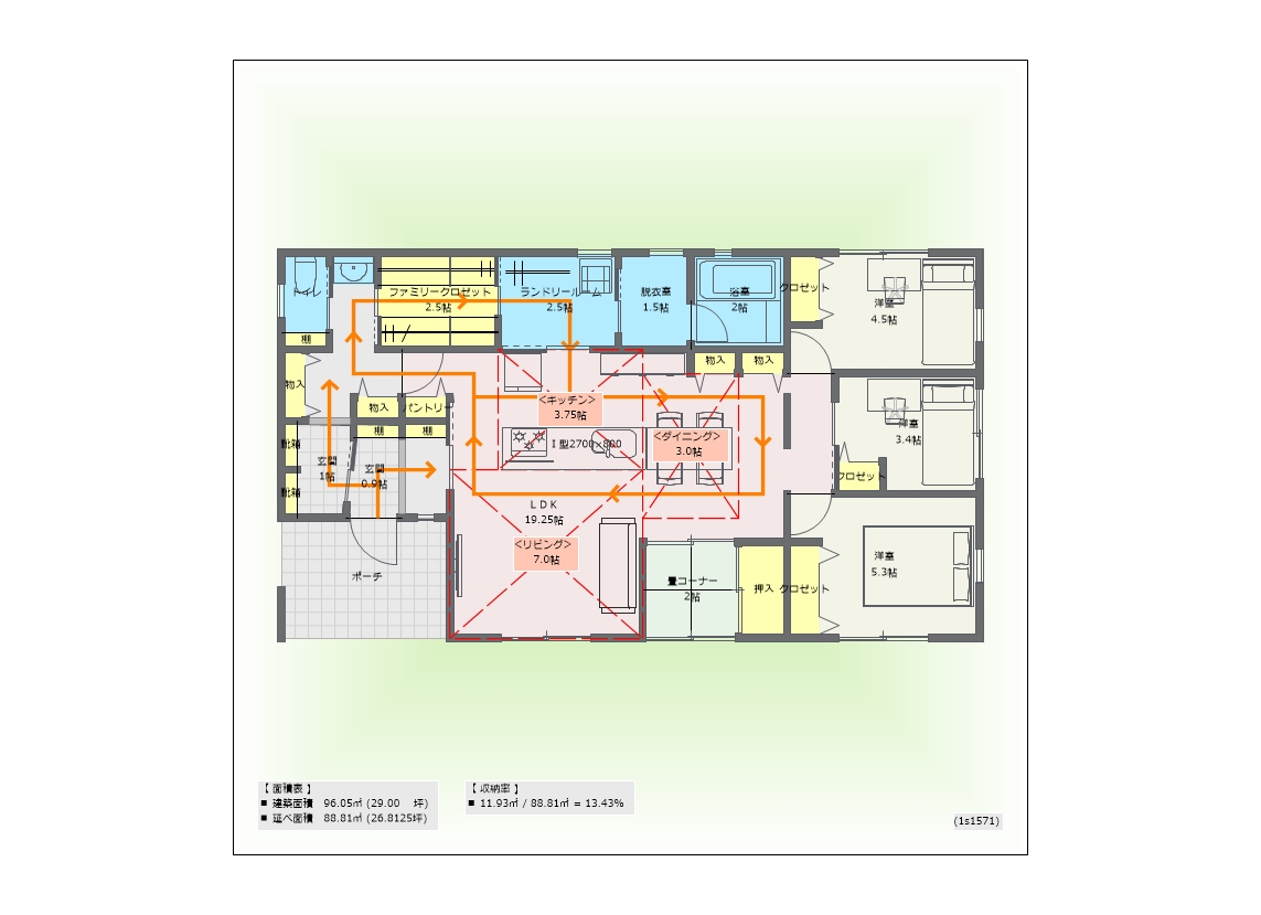 ■ 延べ面積  88.81㎡ (26.8125坪)