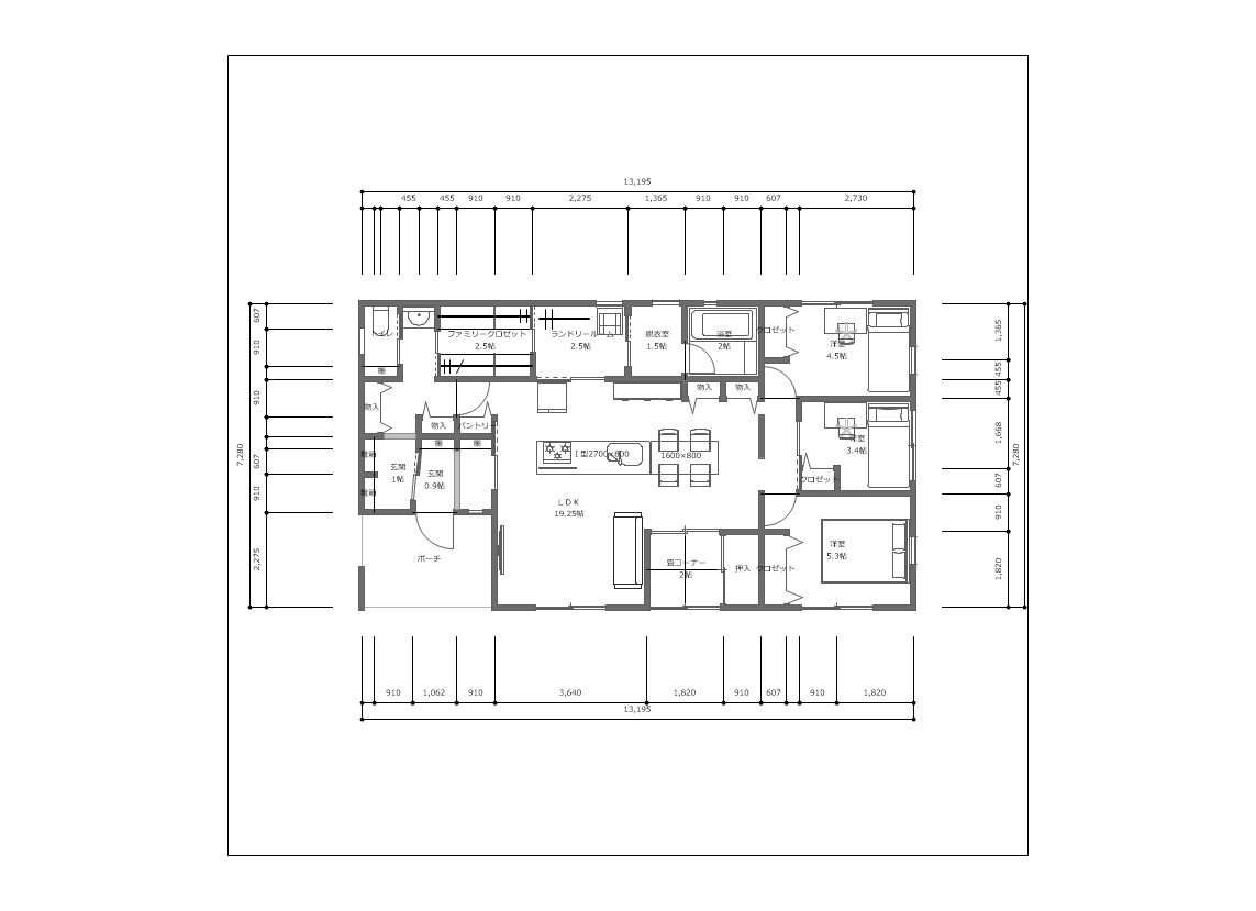 ▶家族玄関から洗面室→ファミクロ→LDKへ続く帰宅動線
