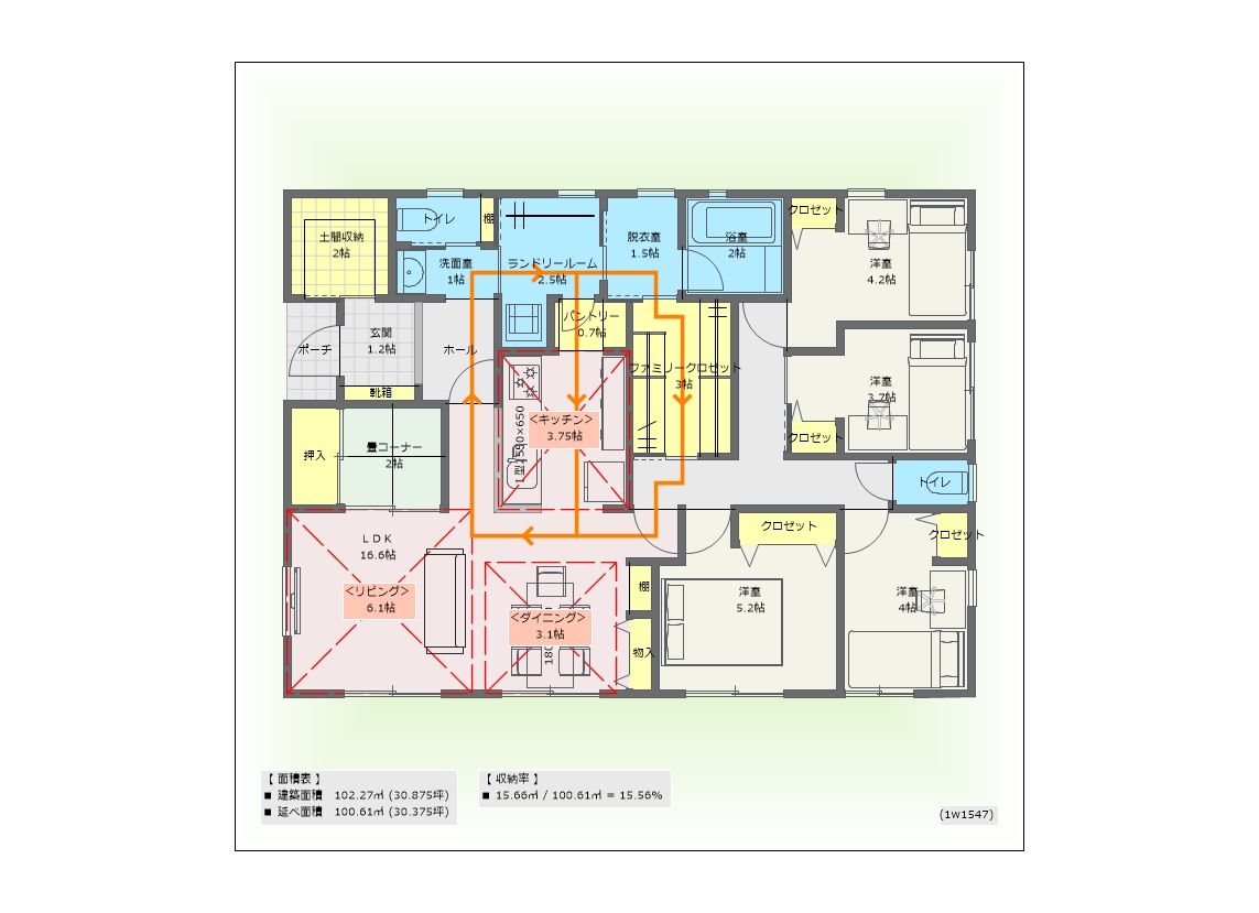 ■ 収納率   15.66㎡ / 100.61㎡ = 15.56%
