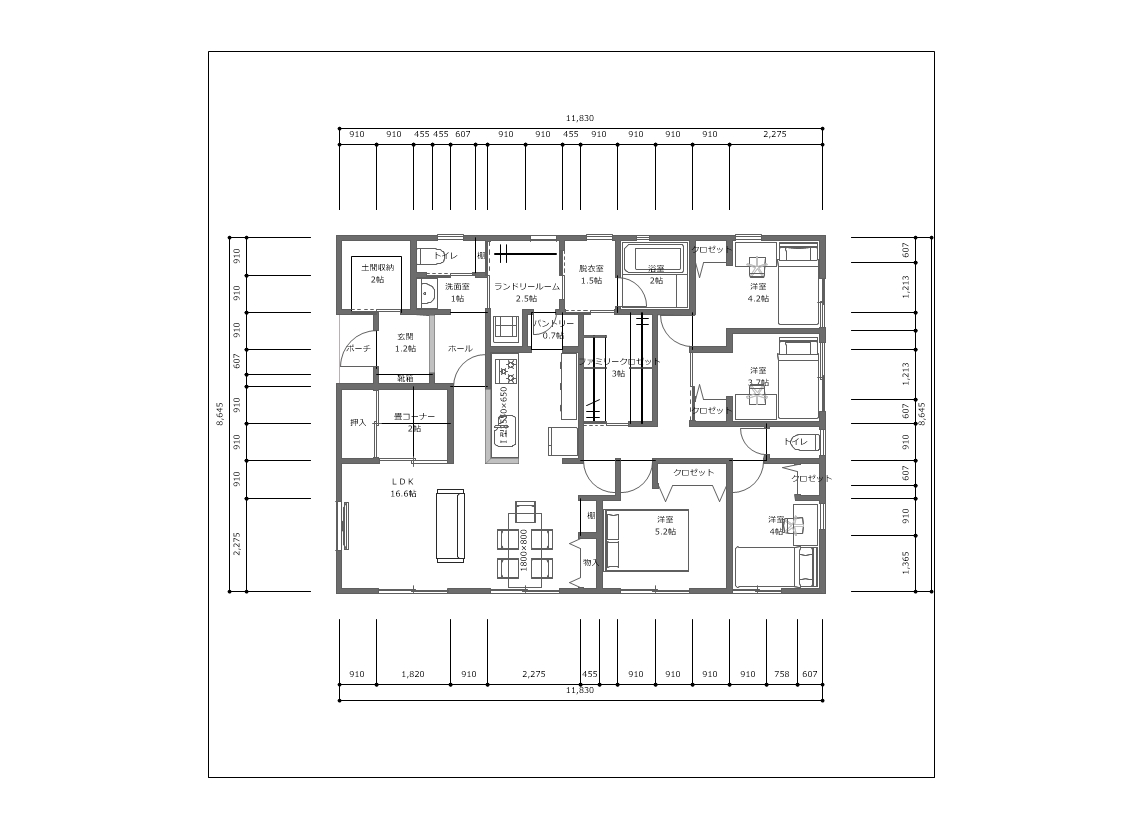 ▶四角い間取りの平屋